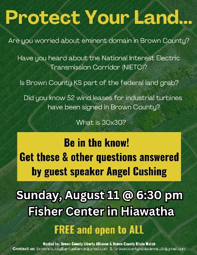 The Protect Your Land presentation will detail the 30×30 program, a plan advanced by radical environmental activists to permanently protect 30 percent of America’s land and oceans by 2030. The program is being advanced by the Biden Administration through Executive Order 14008, signed January 27, 2021. This program appears to move us from a nation founded on private property principles to one controlled by the administrative state. Property and landowners warn it will be the largest unauthorized federal land grab our nation has ever faced. There is no constitutional or statutory authority for the President, the Department of Interior, or the Department of Agriculture, to set aside and permanently preserve 30 percent of all land and oceans in the U.S., and no such authority is referenced in the Executive Order. Angel Cushing has discovered and learned much about all of this, including that every federal department is now tasked with implementation of the 30×30. However, none of these departments are consulting with property owners or citizens, and in fact appear to be trying to accomplish their goals in secret, as evidenced by the recent NIETC, which was already in stage 2 (of 4) before we heard about it running through Brown County.
